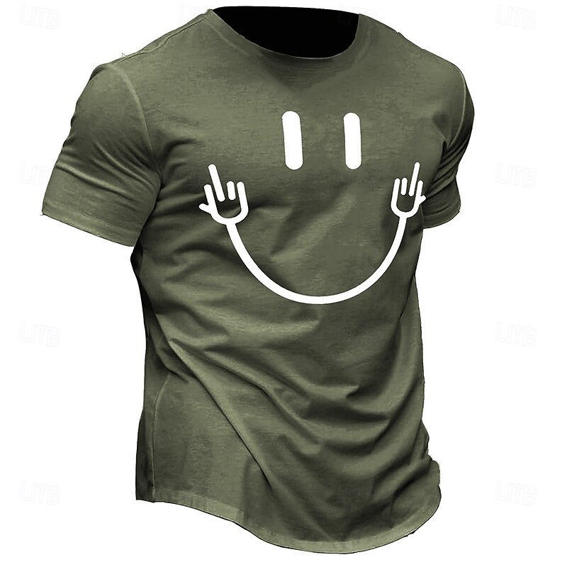 HOT ! Men's Smile Face T Shirt Short Sleeve T shirt 3D Print Crew Neck Shirt Retro Vintage Casual Street Casual Bar Green Light Grey Black Gray Spring & Summer Clothing Apparel S M L XL 2XL 3XL