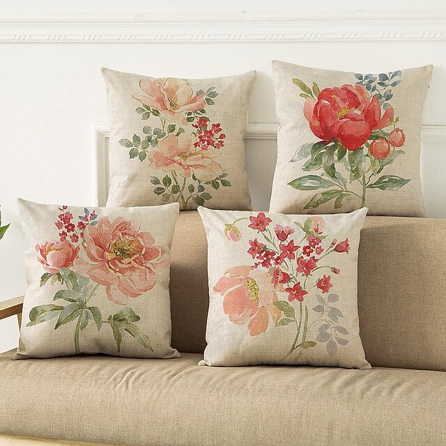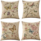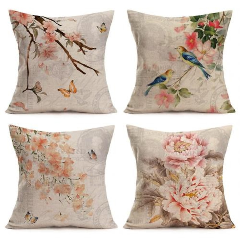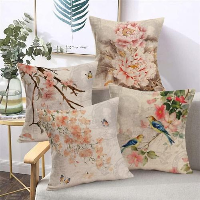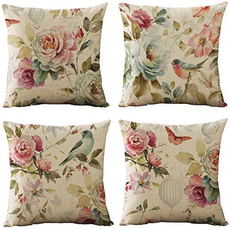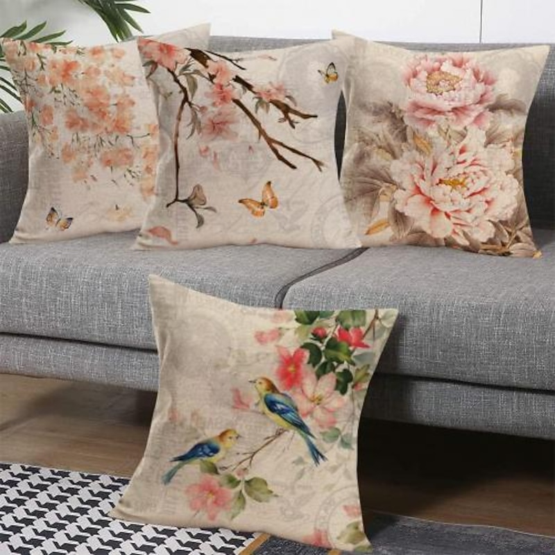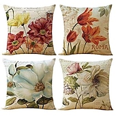Vintage Floral Double Side Pillow Cover 4PC Soft Decorative Square Cushion Case Pillowcase for Bedroom Livingroom Sofa Couch Chair