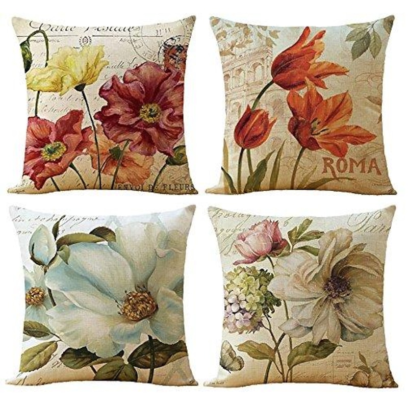 More information about Vintage Floral Double Side Pillow Cover 4PC Soft Decorative Square Cushion Case Pillowcase for Bedroom Livingroom Sofa Couch Chair