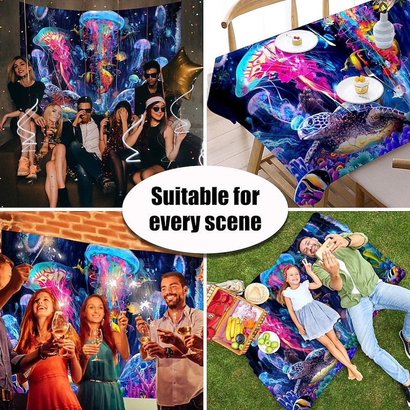 Highlights 【Durable Construction】 Crafted with high-quality polyester fabric, this tapestry is built to last. Its robust composition ensures that you can enjoy its beauty for years to come. 【Soft and Lightweight】 This tapestry is soft to the touch and lightweight, making it perfect for both indoor and outdoor use. 【Multiple Size Options】 Available in different sizes to accommodate any room's dimensions. 【Intricate Design】 The tapestry features a captivating design inspired by life itself. Its vivid imagery, crisp lines, and vibrant colors will become a conversation piece in any room. 【Versatility at Its Best】 Not just for wall decor, this tapestry can also double as a tablecloth or a picnic blanket, adding functional versatility to its artistic charm. 【Note】 1. Please allow 1-2cm (0.4"-0.8") deviations due to manual measurement. 2. Please understand the tiny color vary from the product due to different light and screen display. 3. UV/Black Light Reactive: This glow in the dark tapestry glows under blacklight / UV light. In normal light, the colors also are full and vivid.