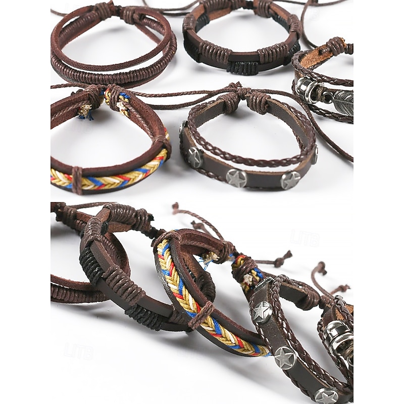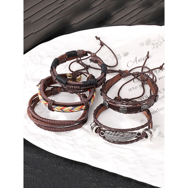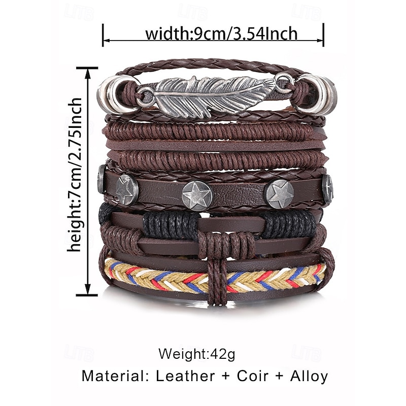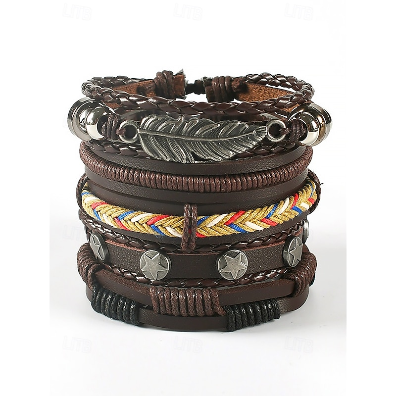 $9.99 - Men's Vintage Multi-Layer Leather Bracelet Set with Feather and Star Charms, Adjustable Wristbands for Casual Wear, Boho Style Accessories for Parties and Gifts 2025. Shop for cheap Men's Jewelry online? Buy at lightinthebox.com on sale today!
