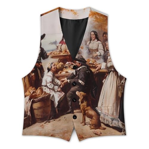 First Thanksgiving Dinner Suit Vest for Men Slim Fit Sleeveless Jacket V Neck Business Waistcoat Button Up Dressy Top 4