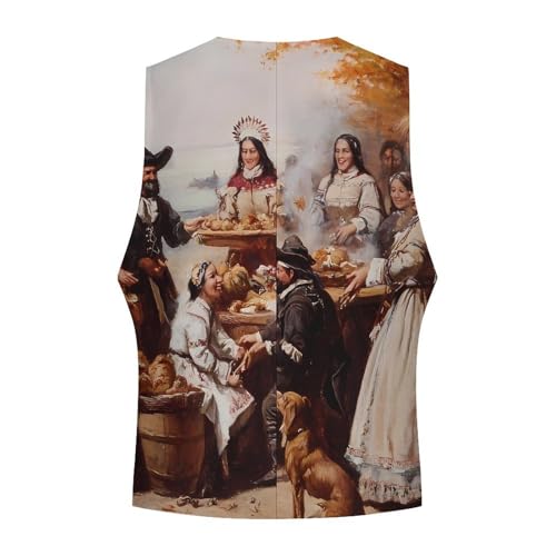 First Thanksgiving Dinner Suit Vest for Men Slim Fit Sleeveless Jacket V Neck Business Waistcoat Button Up Dressy Top 2