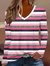 More information about Women's T Shirt Graphic Geometric Color Block Vintage Stylish Classic Long Sleeve V Neck Regular Tops Daily Print Rose Pink Spring Fall Winter