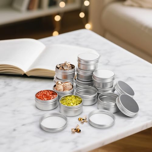Tosnail 48 Pack 1 OZ Mini Metal Round Tins with Screw Lids, 30 ML Empty Sample Jars, Travel Storage Containers 7