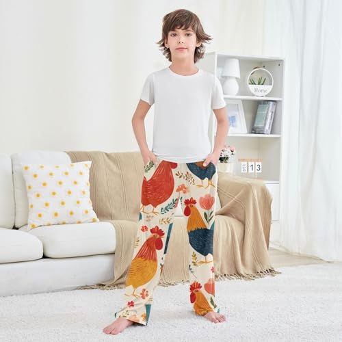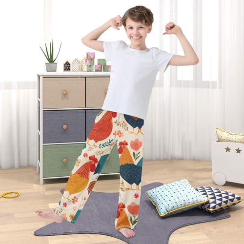 Cock Florals Boys Long Pants Soft Trousers Elastic Waist Kids Lounge Bottoms with Pockets S-XL 6