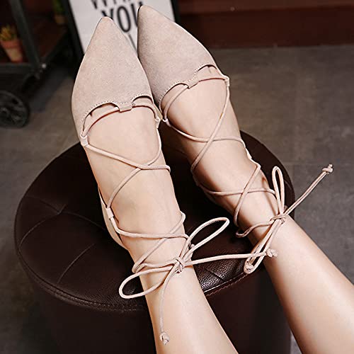 YIBLBOX Womens Sandal Pointy Toe Ankle Strap Wrap Ballet Flats Lace Up Wedding Party Sandals 5