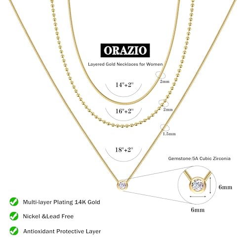 More information about ORAZIO Gold Necklaces for Women,Layered Gold Necklace,14K Gold Plated Pendant Necklaces,Simple Choker Necklaces Set, Dainty Gold Chain Necklaces,Trendy Gold Stacked Jewelry Gifts for Women