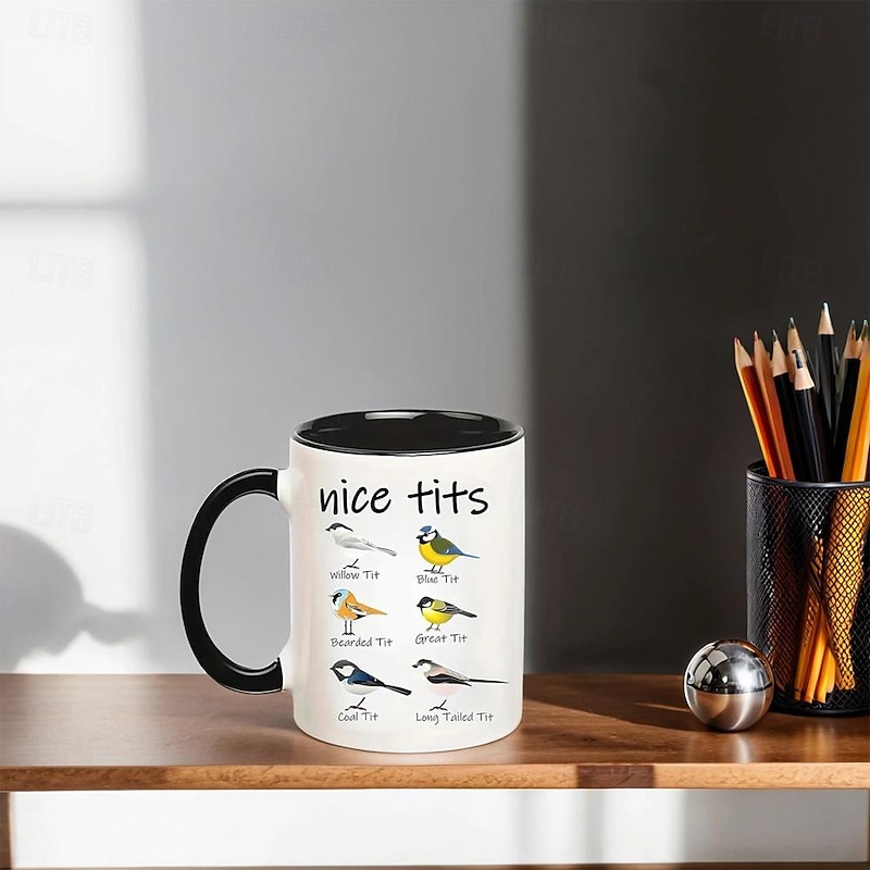 HOT ! Nice Tits Bird Mug - Funny Birdwatcher Coffee Cup: Fowl Language Bird Coffee Mug, Birthday Gift for Women, Men, and Bird Lovers - 11 Ounce Capacity