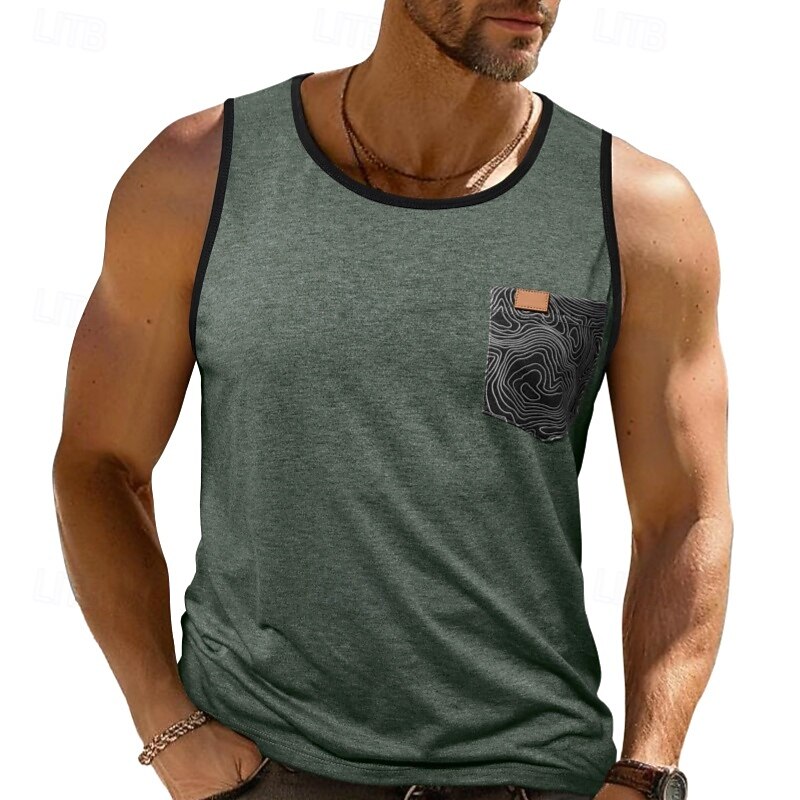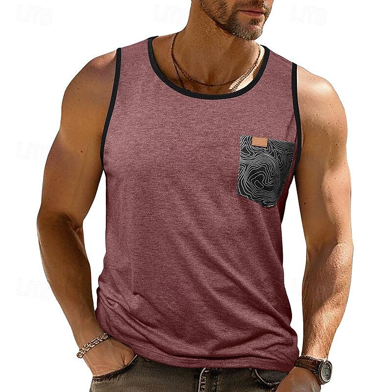 Men's Tank Top Vest Sleeveless Shirt Sleeveless Crewneck Summer Color Block Fashion Classic Comfortable Pocket Vacation Casual Holiday Dark Red Dark Navy Blue Top Tee for Men 9