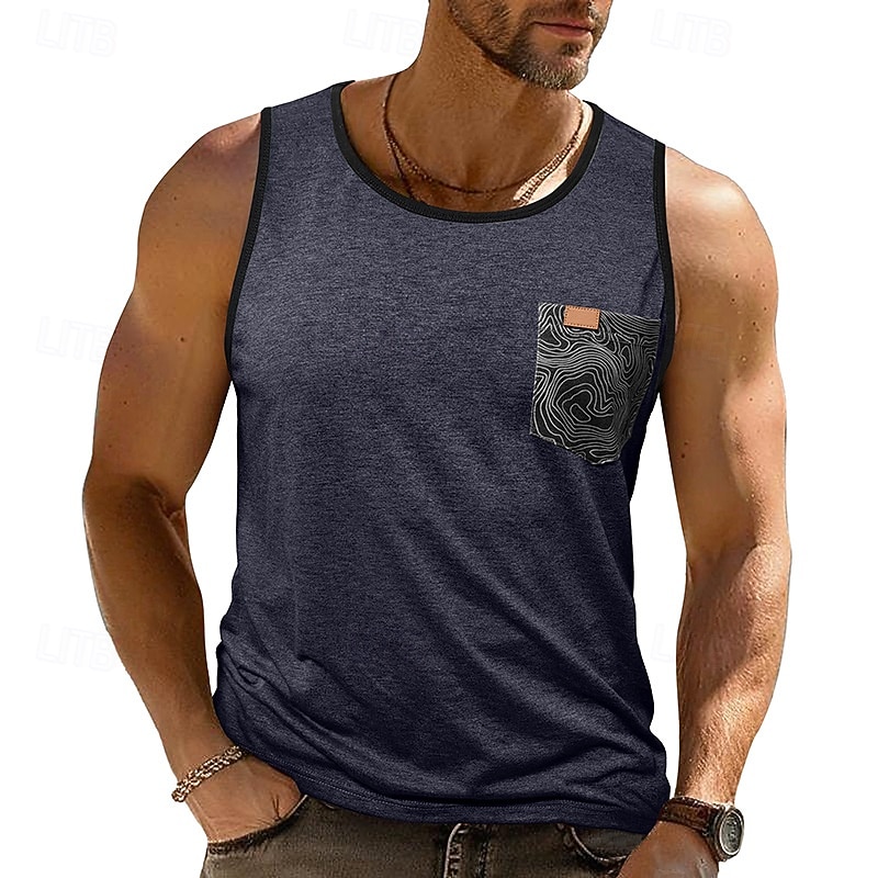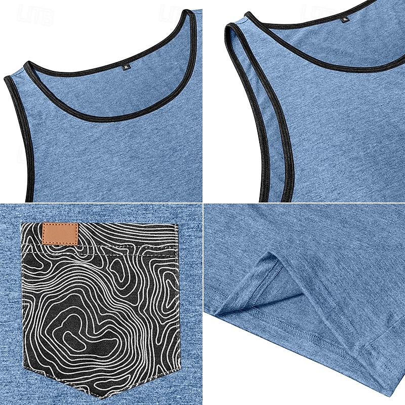 More information about Men's Tank Top Vest Sleeveless Shirt Sleeveless Crewneck Summer Color Block Fashion Classic Comfortable Pocket Vacation Casual Holiday Dark Red Dark Navy Blue Top Tee for Men