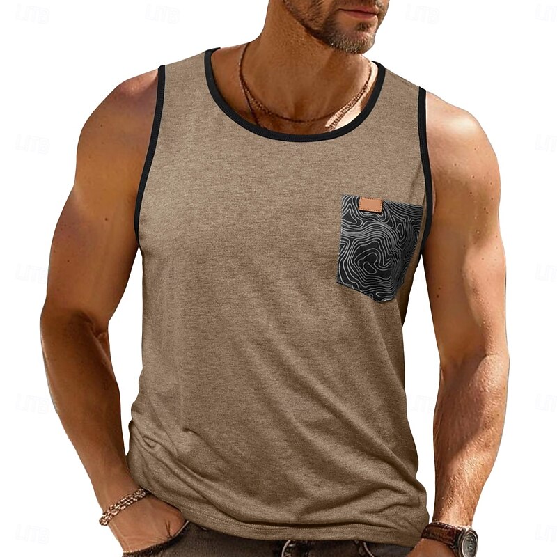 Men's Tank Top Vest Sleeveless Shirt Sleeveless Crewneck Summer Color Block Fashion Classic Comfortable Pocket Vacation Casual Holiday Dark Red Dark Navy Blue Top Tee for Men 15