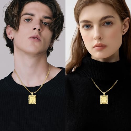 D&K Essentials Initial Necklace for Women and Men 14K Gold Plated Square Letter Pendant with A - Z Capital Monogram on Figaro Chain, Stylish and Hypoallergenic Jewelry 5