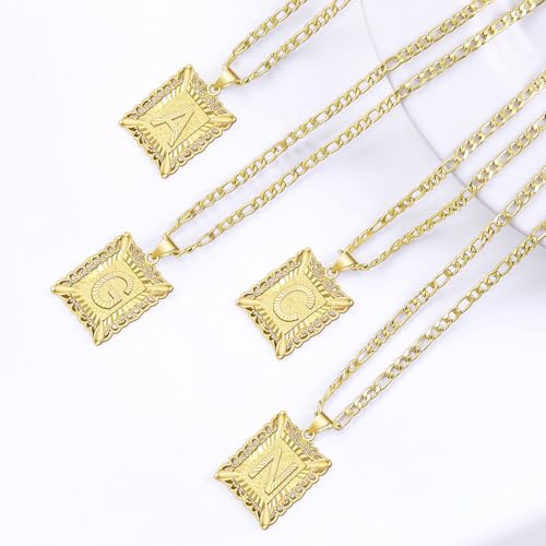 D&K Essentials Initial Necklace for Women and Men 14K Gold Plated Square Letter Pendant with A - Z Capital Monogram on Figaro Chain, Stylish and Hypoallergenic Jewelry 7