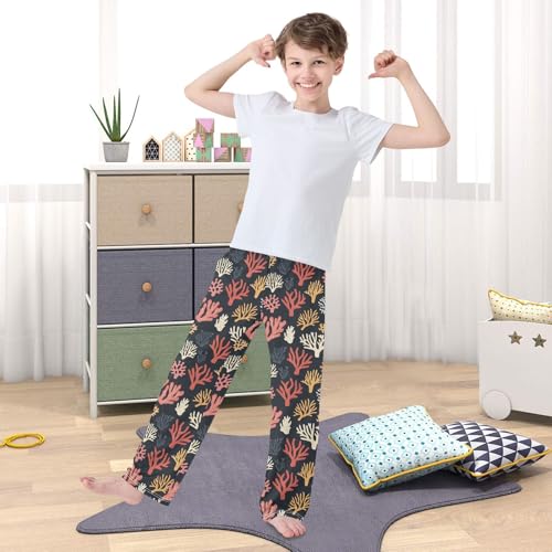 HOT ! Pajama Pants Coral on Black Background PJ Bottoms Sleepwear Lounge Sleep Pant with Pockets