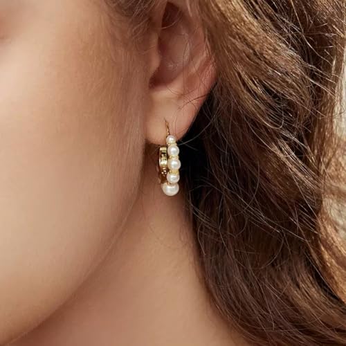 More information about 6 Pairs Gold Hoop Earrings for Women, Hypoallergenic Twisted Statement Earrings, Fashion Large Pearls - Beautifully Decorated for Birthday Parties(Style 2)