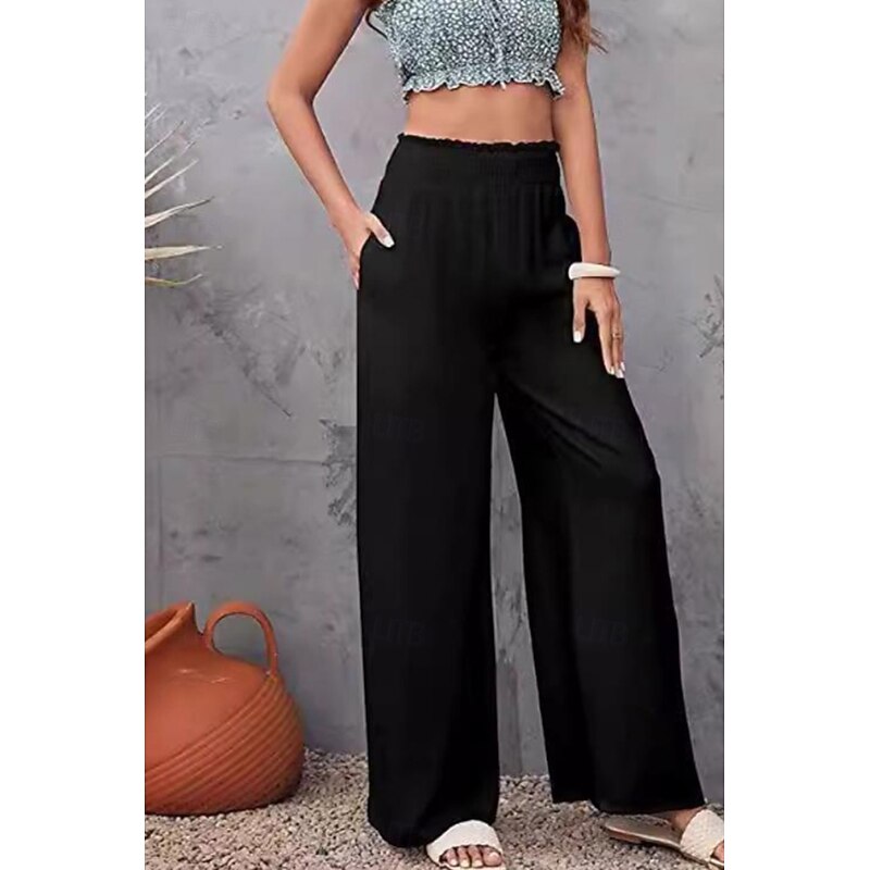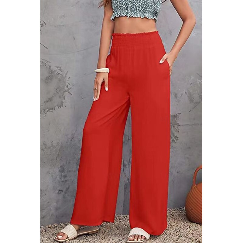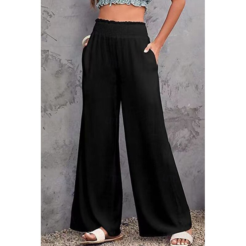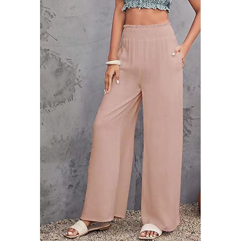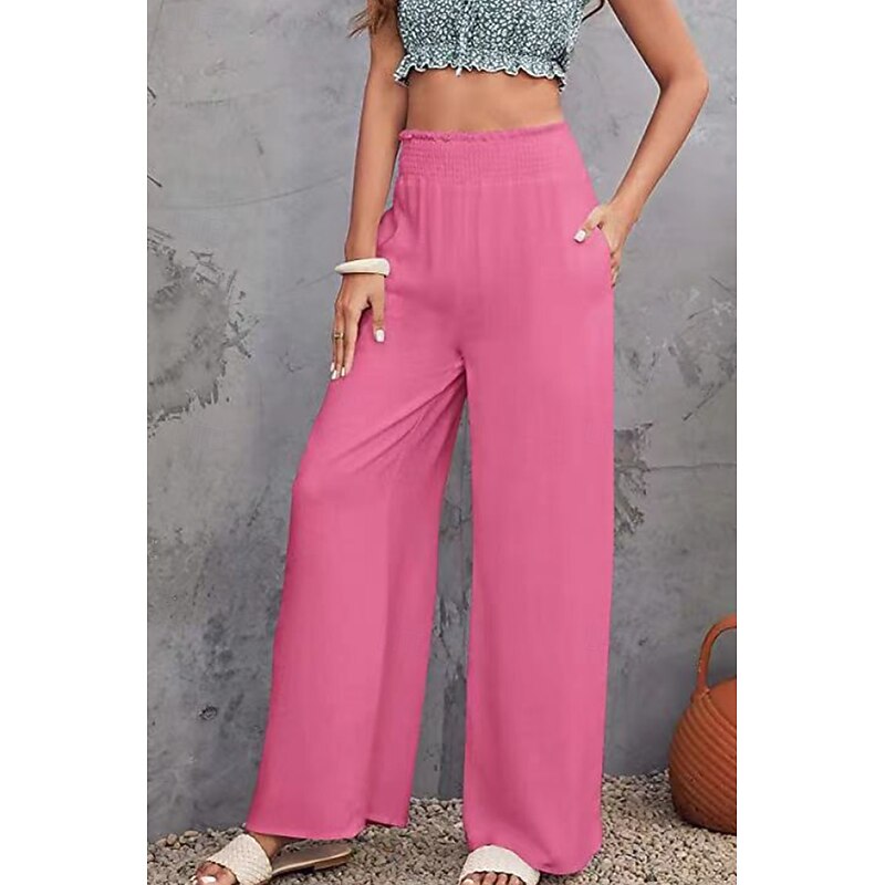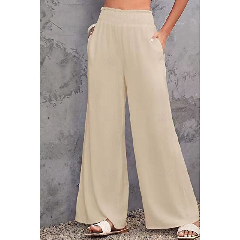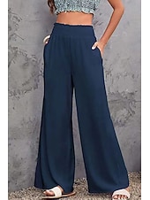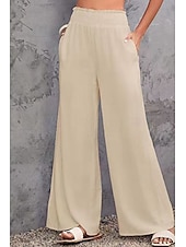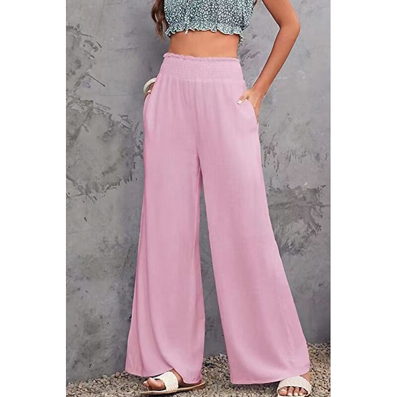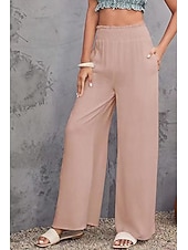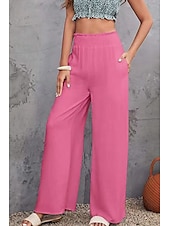 More information about Women's Cotton Linen Pants Slacks Fashion Streetwear Full Length Natural Plain Pocket Elastic Waist Comfy Outdoor Casual Daily Weekend Magenta Apricot Navy Black Summer Regular Fit