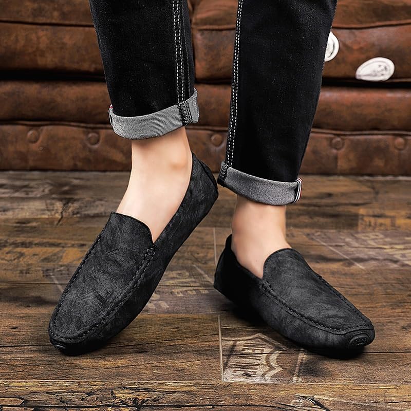 HOT ! Mens Loafers Round Toe Leather Driving Style Loafer Flexible Flat Heel Lightweight Outdoor Party Slip-on
