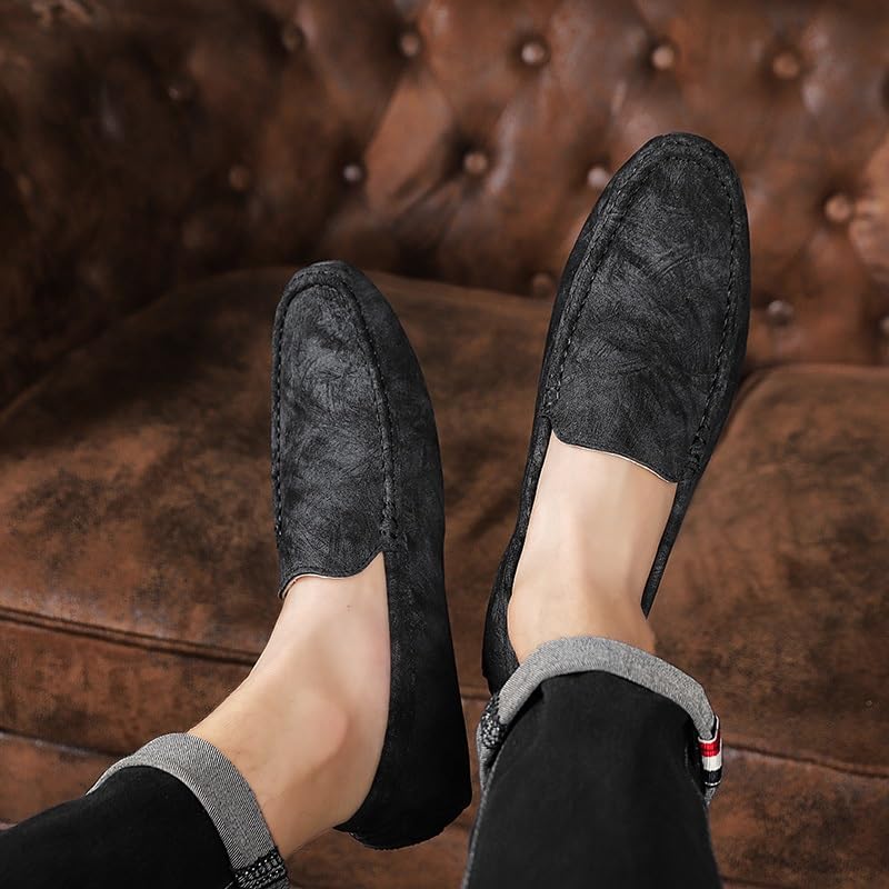 Mens Loafers Round Toe Leather Driving Style Loafer Flexible Flat Heel Lightweight Outdoor Party Slip-on 6