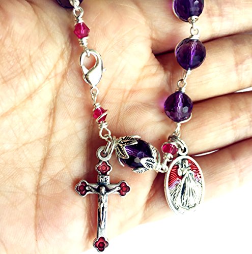 elegantmedical Silver Wire Wraped UNDOUBTED AMETHYST Crystal BEAD BRACELET ROSARY CROSS CATHOLIC 4