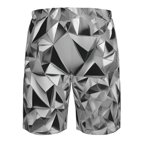 Silver Geometric Figure Print Beach Casual Shorts for Men,Summer Swim Trunks,for Surfing,Running,and Everyday Wear 1