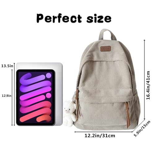 HOT ! Teclado Kawaii Backpack with Cute Accessories Corduroy Casual Bookbags with Pendants Lightweight Laptop Bag Travel Daypacks (Grey)