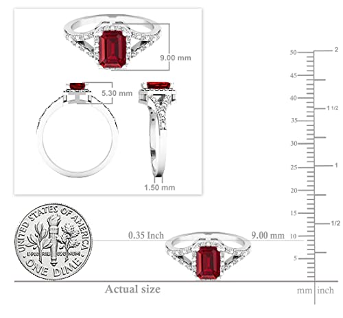 Dazzlingrock Collection 7x5mm Emerald Shape Lab Created Gemstone & White Diamond Split Shank Engagement Ring for Women in 925 Sterling Silver 1