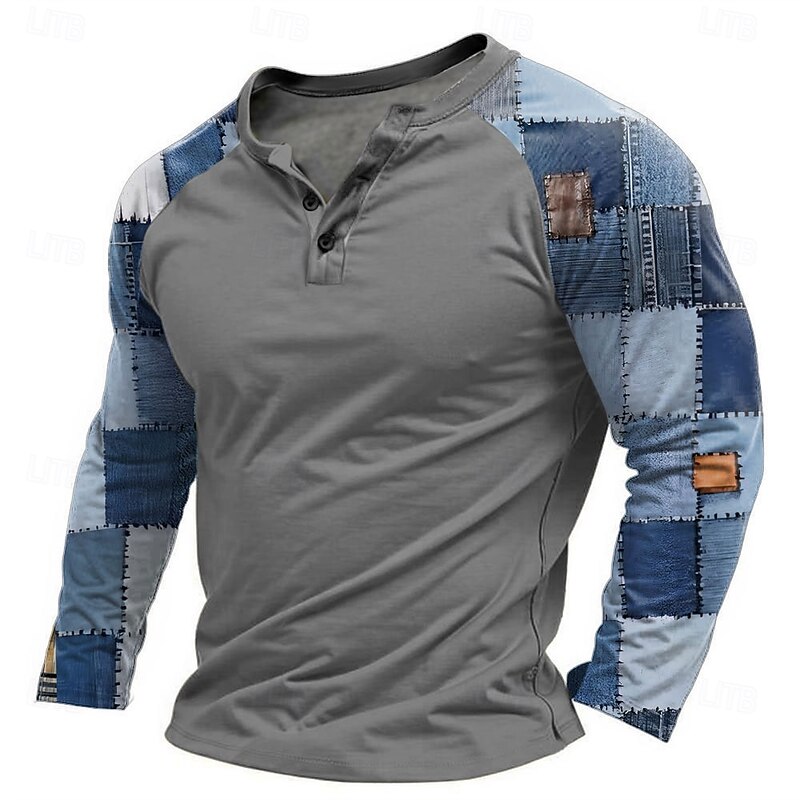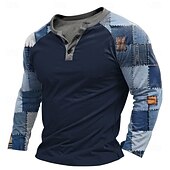 More information about Men's Graphic Patchwork T Shirt Henley Shirt Tee Long Sleeve Designer Basic Classic Outdoor Daily Sports Spring & Fall Black Light Gray Navy Blue Henley Henley T-Shirt