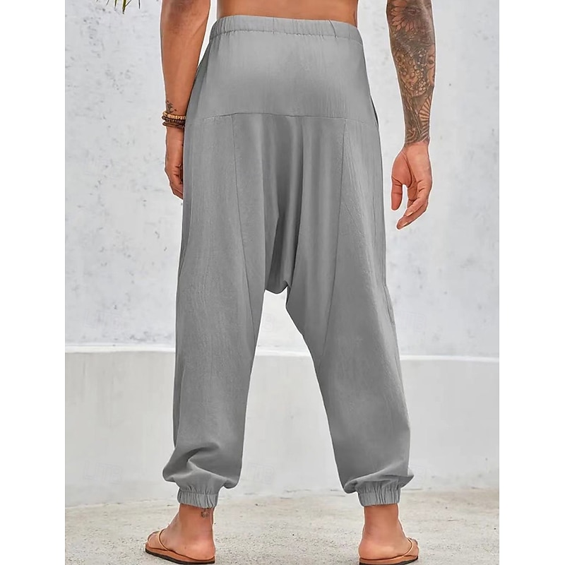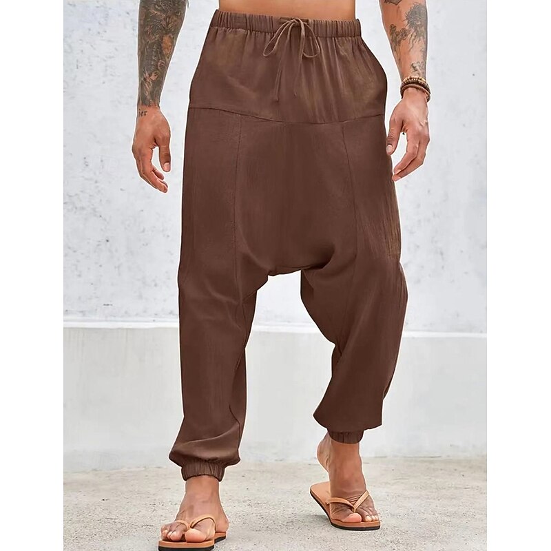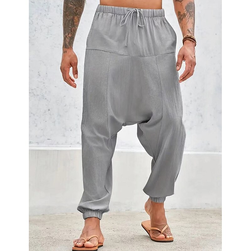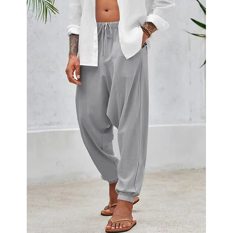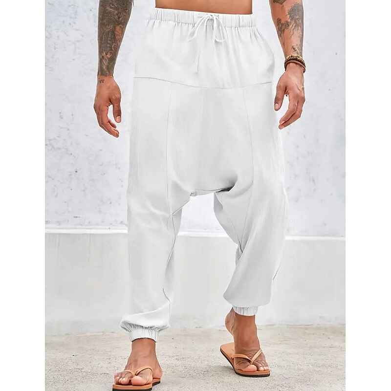 Men's Linen Pants Trousers Summer Pants Baggy Pants Harem Pants Drawstring Elastic Waist Plain Comfort Breathable Full Length Yoga Daily Holiday Fashion Classic Style White Navy Blue 10