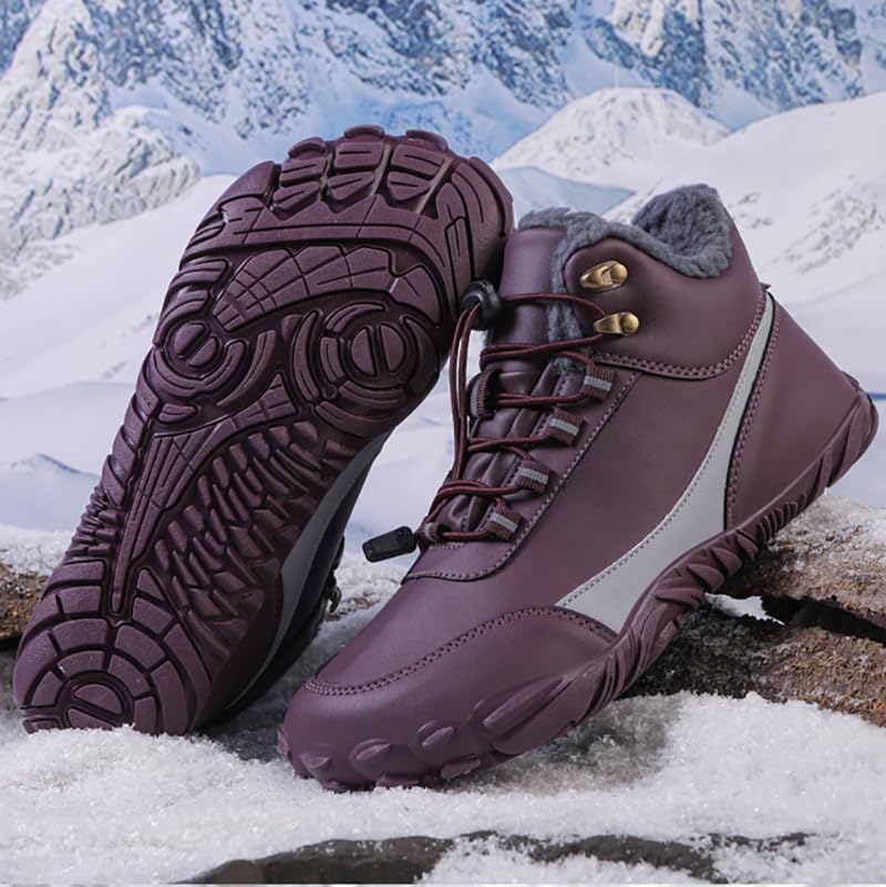 Winter Barefoot Boots Women Winter Snow Boots For Women Plush Warm Ankle Shoes Non-slip Outdor Waterproof Hiking Shoes (YN08-red, Adult, Women's, 9.5, Digital, US Shoe System, Wide Leg Pants) 7