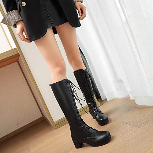 Women Fashion Chunky High Heels Lace Up Mid Calf Boots Side Zipper Platform Round Toe Knee High Boots Cosplay Lolita Princess Shoes 7