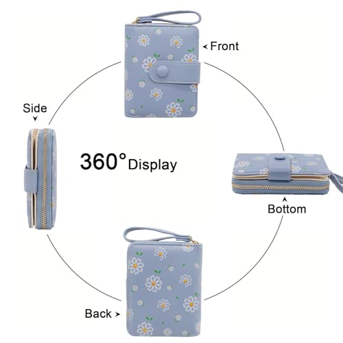 LJCZKA Cute Wallet for Women Small Flower Wallet Card Holder Girls Zipper Leather Wallet Minimalist Kawaii Short Purse (Blue) 5