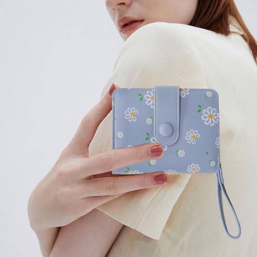 LJCZKA Cute Wallet for Women Small Flower Wallet Card Holder Girls Zipper Leather Wallet Minimalist Kawaii Short Purse (Blue) 1