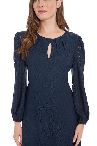 London Times Women's Elegant Eyelet Knee-Length Long Bishop Sleeves-Cinched Waist-Keyhole Neckline-Versatile Cocktail Dress 6