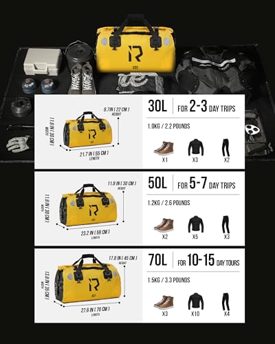 More information about BORLENI Waterproof Motorcycle Dry Duffel Bag Luggage Tail Bag with Large Storage Space,Roll Top Closure, Shoulder Straps, Inner Pocket and Mesh Pocket for Motorcycling Travel Camping(Yellow,50L)