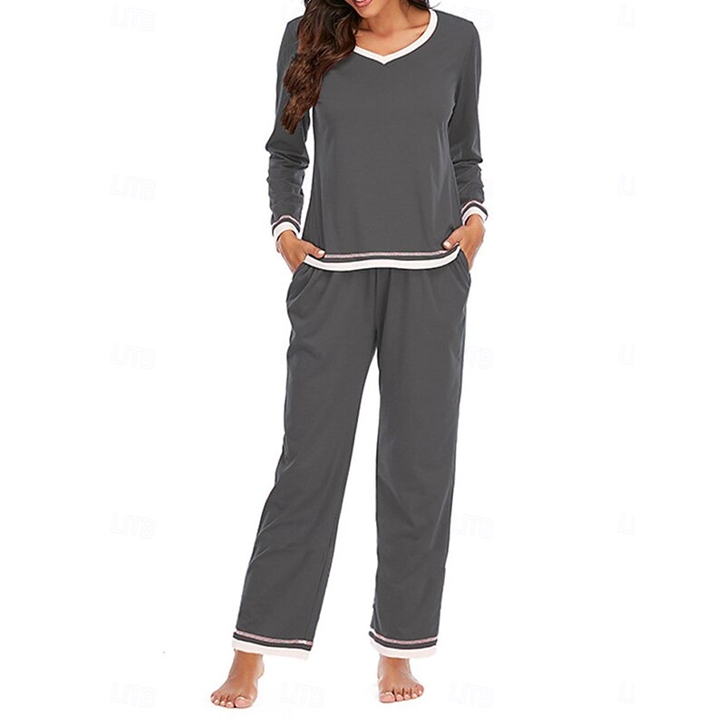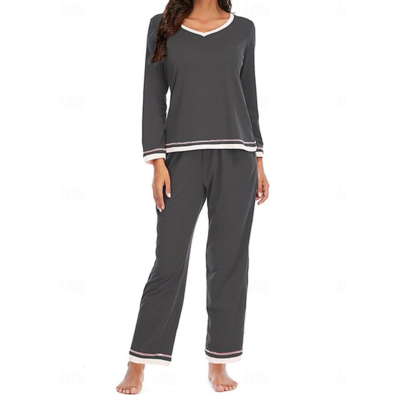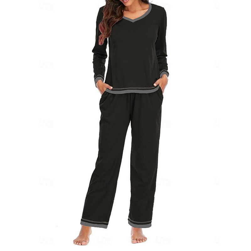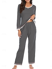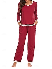 More information about Women's Pajama Set Pure Color Casual Comfort Home Daily Cotton Comfort Warm Crew Neck Long Sleeve T shirt Pant Elastic Waist Fall Winter Home Outfits