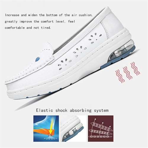 CLSQLXYJZC Summer Leather Loafers, Womens Casual Breathable Mesh Hollow Slip on Lightweight Slip Resistant Nursing Shoes, Lightweight Air Cushion Walking Shoes, for Doctors 5