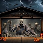 More information about Halloween Tapestry Garage Door Cover Large Hanging Backdrop Skeleton 3D Print Dark Punk Gothic Style Party Outdoor Shooting Backgrounds Yard Haunted House Home Decor