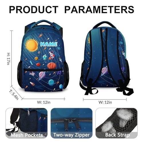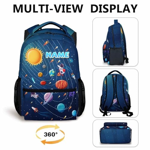 Custom Kids School Backpack for Preschool - Cute Solar System Planet Bookbag for Boys - Personalized 17" Large Capacity Galaxy Blue Lightweight Schoolbag for Children 3