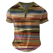 Men's Rainbow Stripes Henley Shirt Waffle T Shirt Short Sleeve Daily Retro Vintage Classic Sports Outdoor Casual Holiday Spring & Summer All Seasons Lake blue Pink Green khaki Henley Henley T-Shirt 9