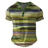 Men's Rainbow Stripes Henley Shirt Waffle T Shirt Short Sleeve Daily Retro Vintage Classic Sports Outdoor Casual Holiday Spring & Summer All Seasons Lake blue Pink Green khaki Henley Henley T-Shirt 11