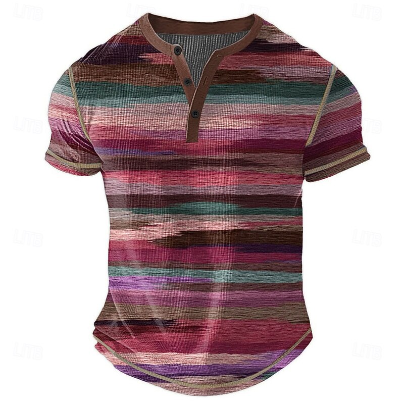 More information about Men's Rainbow Stripes Henley Shirt Waffle T Shirt Short Sleeve Daily Retro Vintage Classic Sports Outdoor Casual Holiday Spring & Summer All Seasons Lake blue Pink Green khaki Henley Henley T-Shirt