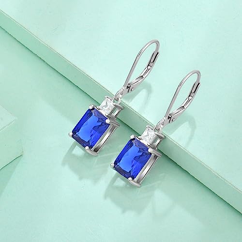HOT ! Starchenie Women's Dangle Earrings Sterling Silver Leverback Earrings Princess Brilliant Cut Birthstone Jewelry