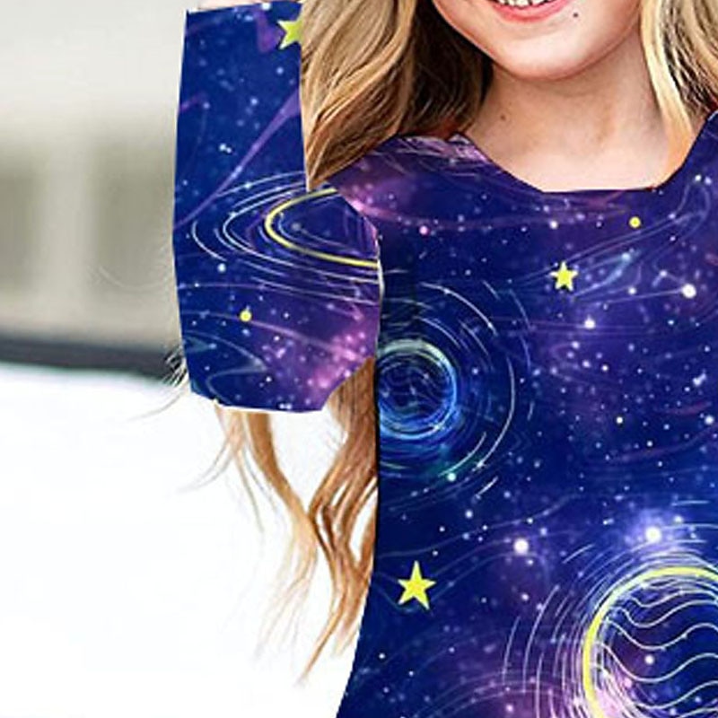 More information about Girls' 3D Galaxy Dress Long Sleeve 3D Print Spring Fall Vacation Daily Holiday Cute Casual Sweet Kids 3-10 Years Swing Dress A Line Dress Above Knee Regular Fit
