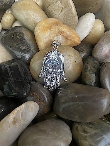 Large Hamsa Hand of Fatima Eye Sterling Silver Pendant Necklace 18" 6