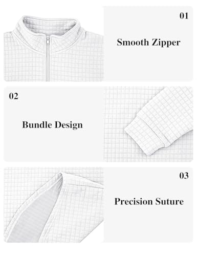 Mens Quarter Zip Pullover Quilted Sweatshirt Long Sleeve Waffle Sweater Half Zip Polo Sweatshirts 2