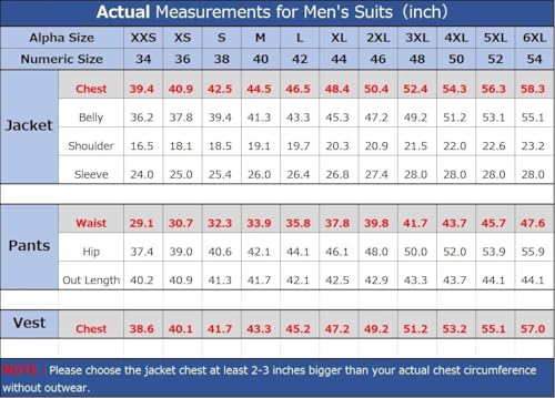 • 【Suitable Occasions】This men tuxedo/suit is suitable for many occasions:Dinner/Work/Business/Conference/Wedding/Party/Prom/Christmas/Cruise/Chorus/Graduation/Date/Fashion show and any other formal occasions,also the best gift for husbands,fathers,brothers and friends.