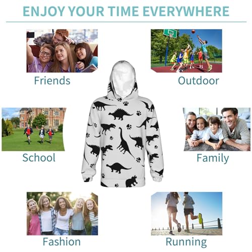 White Black Dinosaur Silhouettes Boy, Girls Sports Shirt Youth Pullover Fashion Hooded Sweatshirt 5