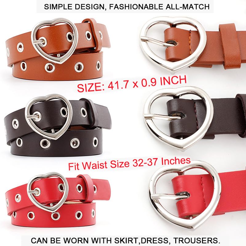 • Heart Belts for Women:Heart shaped Buckle belts,Width: 2.5 cm/1 inch,length:110cm/43.30";fit waist under 37".Strap is full of hole,Adjustable Waist.