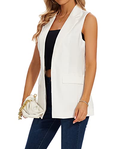 Women's Long Sleeveless Blazer Vests Casual Lapel Office Cardigans Vest Open Front Jacket Blazers 6